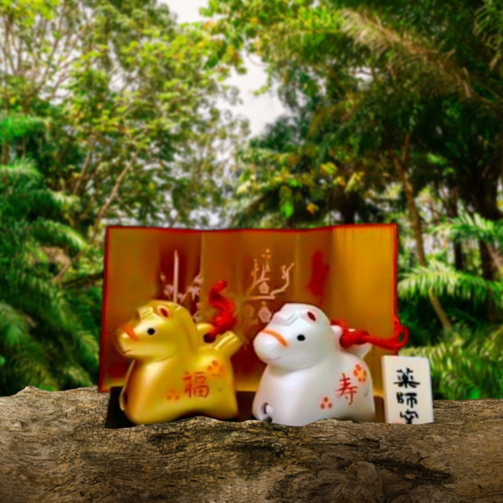 Year of the Horse Figurines: #69 Gold & Silver Horse Bells with Screen and Tray