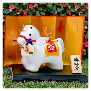 Year of the Horse Figurines: #86 Horse with Hamaya, Screen, and Tray